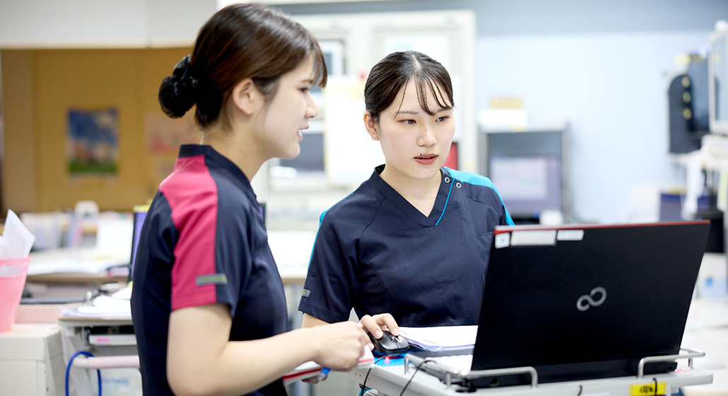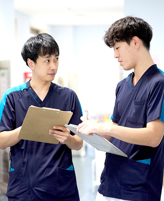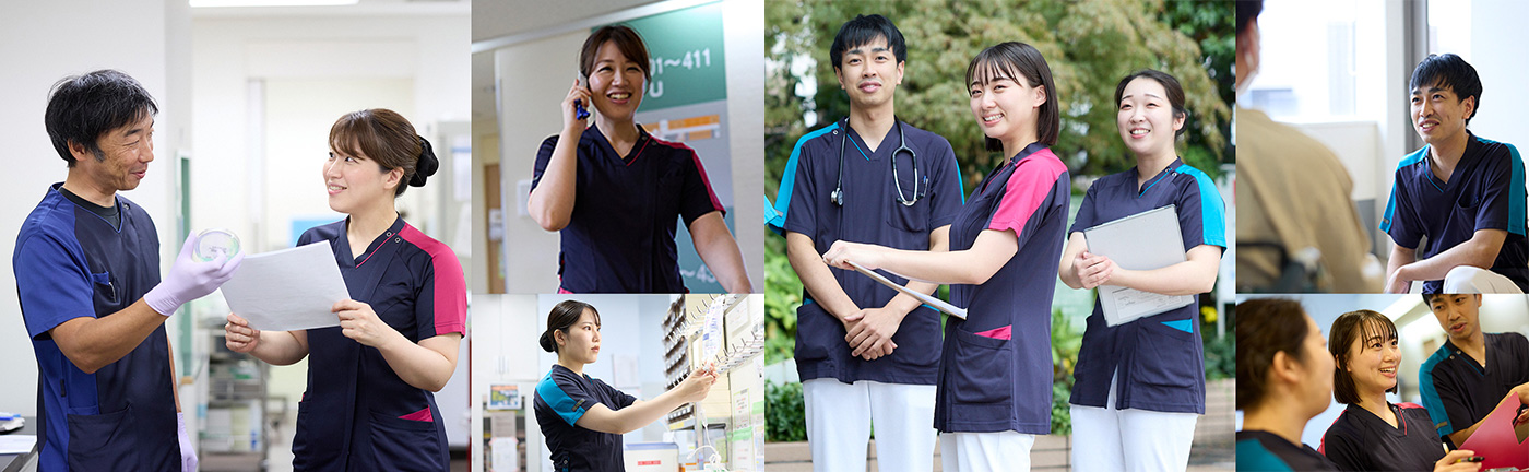 患者さんや他職種を含めたスタッフ間でコミュニケーション・連携をとっていくことを大切にしております。各部署でも様々な意見交換をしながら、日々の業務を行っています。